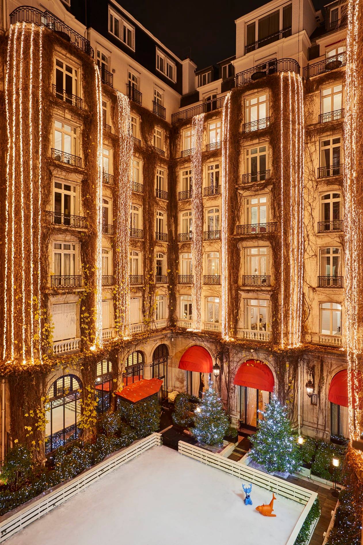 Jedan od takvih primjera je Hôtel Plaza Athénée, koji svoj atraktivni unutrašnji vrt transformira u pravu zimsku oazu.