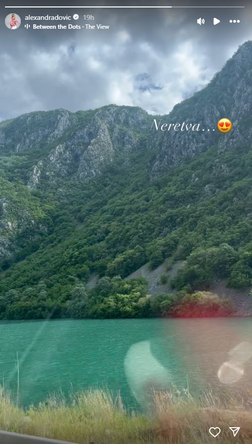 Oduševljena atmosferom, Aleksandra je podijelila sretne trenutke na društvenim mrežama, objavivši Instagram story u kojem je podijelila video predivne rijeke Neretve, uz emotivnu poruku: „Neretva <3“.