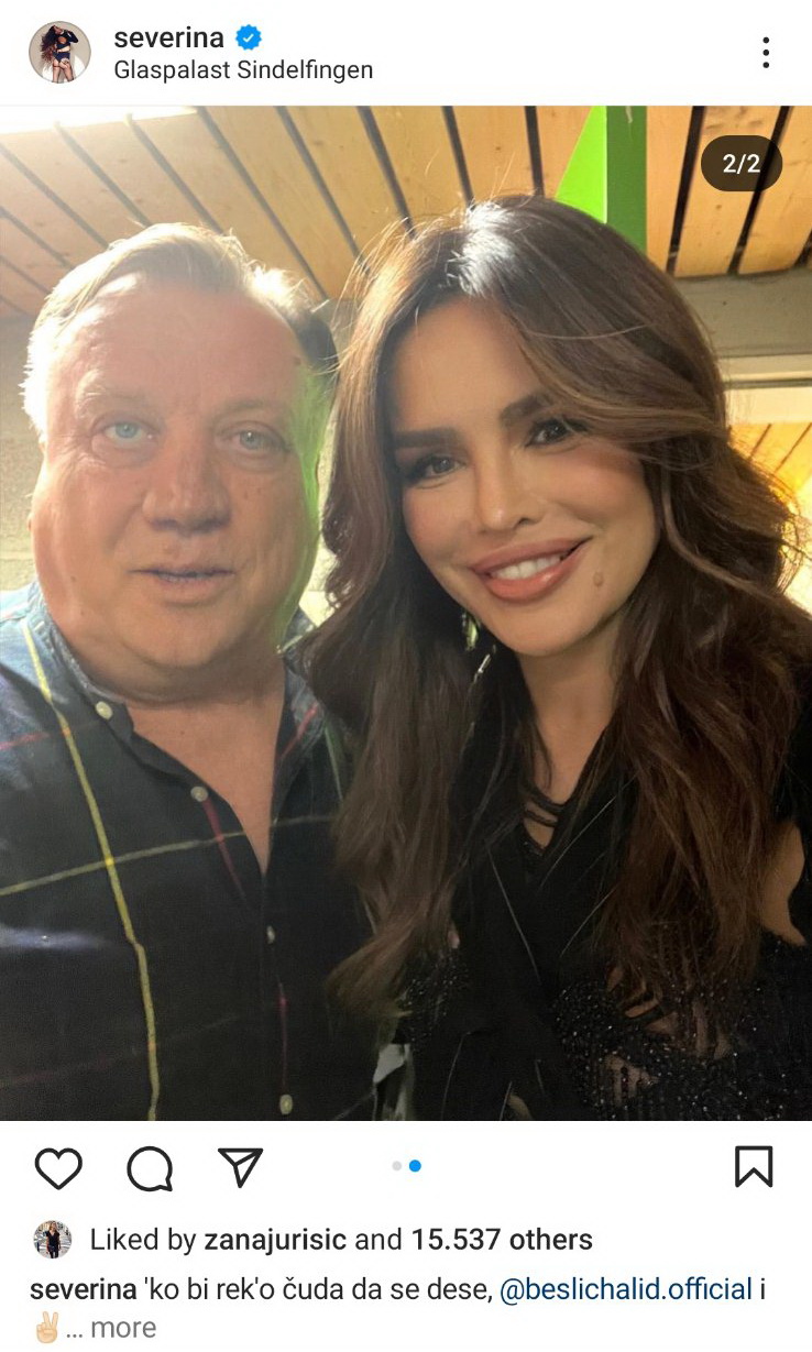 U areni Glaspalast u gradu Sindelfingen u Njemačkoj Halid Bešlić i Severina održali su zajednički koncert, a zajedničku fotografiju splitska pjevačica podijelila je na svom Instagram profilu.