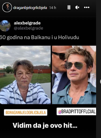 “Vidim da je ovo hit…”, napisao je na svom Instagram storyju i podijelio poređenje sa Pittom.