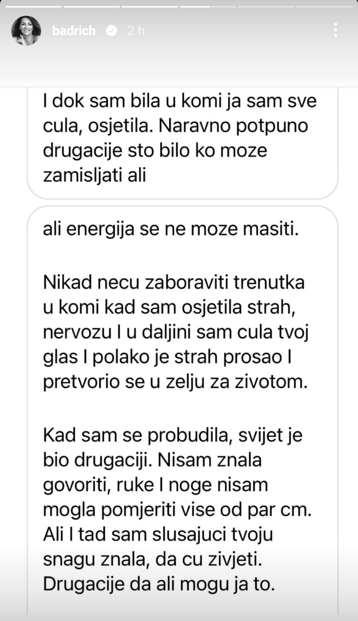 Hrvatska muzička diva Nina Badrić na svom je Instagram profilu kroz storije podijelila poduže pismo koje je primila od jedne velike obožavateljke, mlade žene koja je doživjela moždani udar.