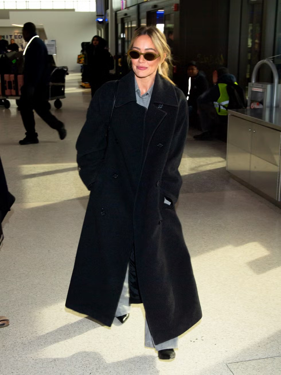 Putujete samo s ručnim prtljagom? Najpametnije je da najglomaznije komade obučete na sebe. Dugi crni kaput i gležnjače kakve nosi Hilary Duff zauzeli bi mnogo mjesta u koferu — ali izgledaju izuzetno elegantno dok ste u pokretu.