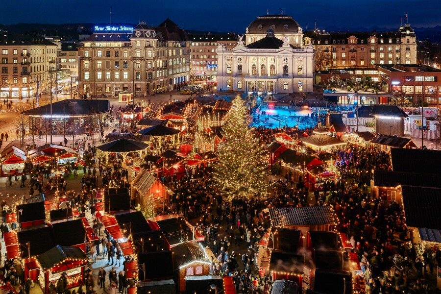 Trg je obasjan hiljadama lampica, a u njegovom centru nalazi se veliki panoramski točak. Vožnja njime pruža fantastičan pogled na jezero, grad i cijelu božićnu scenografiju. Ako volite visinu i panoramske prizore, ova atrakcija je obavezna.
