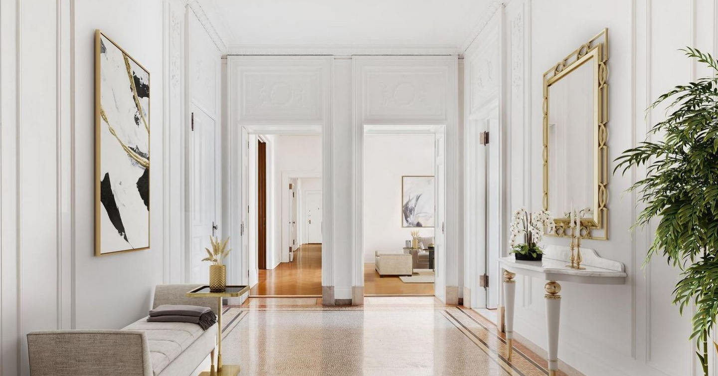 Stan je imao 6.000 kvadratnih stopa, pet spavaćih soba, biblioteku i više terasa, s privatnim ulazima i liftovima, što je omogućavalo diskretne dolaske i odlaske.