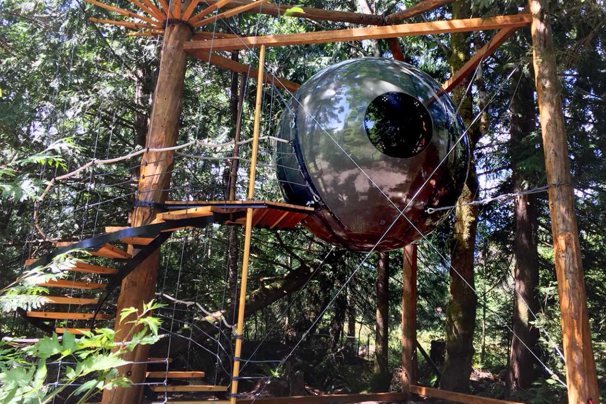 Zamislite samo šumu, visoke krošnje drveća i među njima – kućice u kojima možete prespavati. Sad tu klasičnu kućicu na drvetu, obično pravougaonog oblika i sa krovom, zamijenite kuglom.