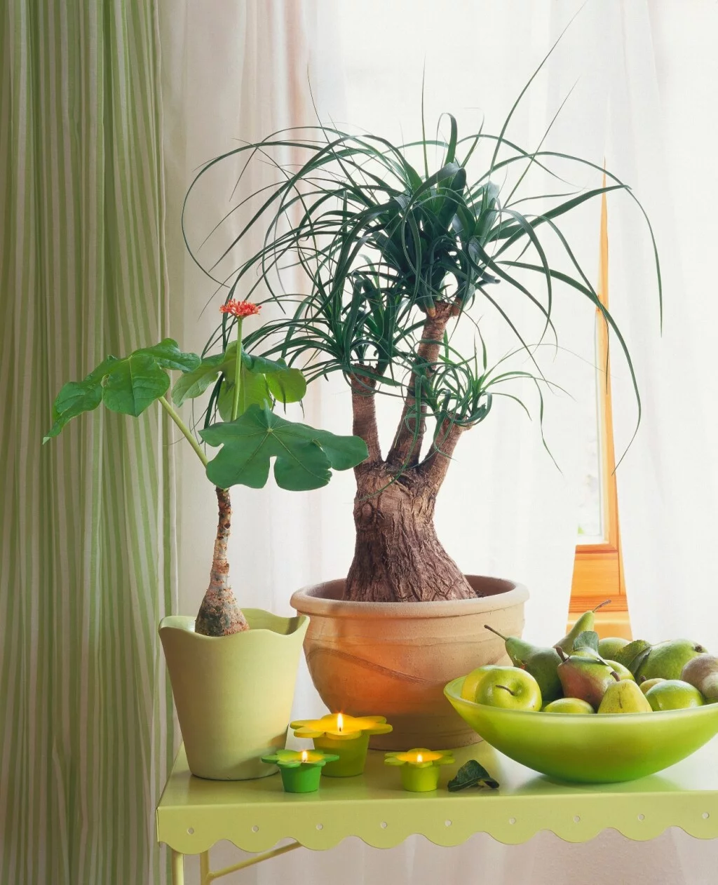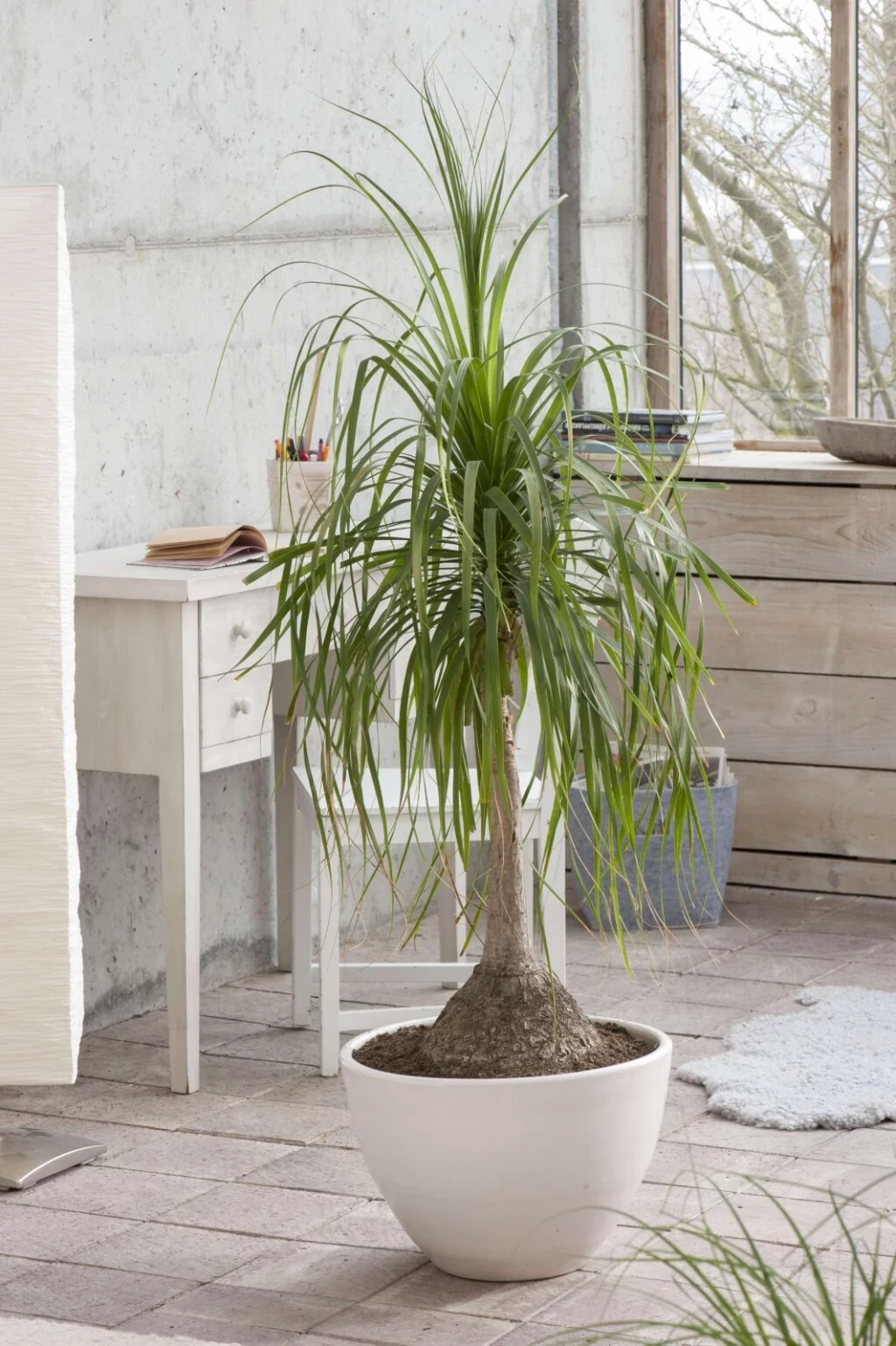 Poznata i kao palma konjskog repa, iako tehnički nije prava palma, ova biljka odmah privlači pažnju svojim neobičnim izgledom. Deblo joj nalikuje na slonovu nogu – zadebljalo pri dnu i suženo prema vrhu, odakle izbijaju dugi, tanki, savijeni tamnozeleni listovi koji podsjećaju na konjski rep.