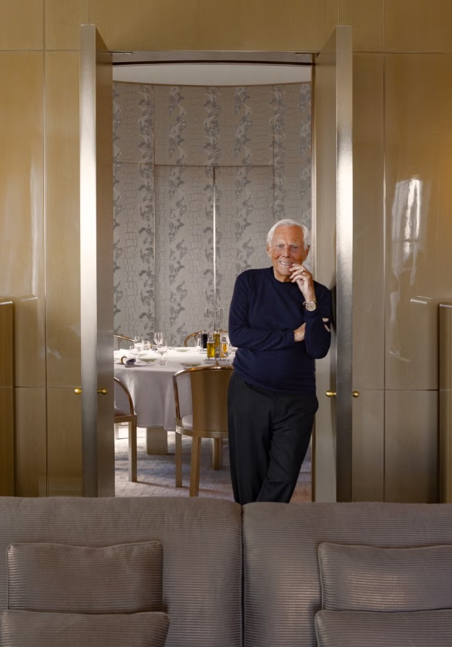 Na prvi pogled, djelovao je klasično. Međutim, pažljiviji posmatrač mogao je primijetiti mnogo više – satenske manšete koje su se savršeno širile na zglobovima, zaobljena ramena, besprijekornu, ali diskretnu krojačku preciznost. Teško je govoriti o prostorima koje dizajnira Giorgio Armani, a ne spomenuti odjeću koju stvara.