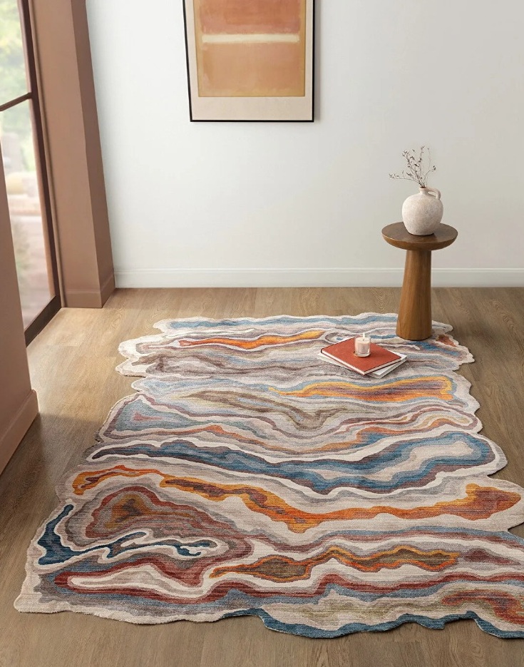 Boje nisu samo vizualne, one su emocionalne. Palete inspirirane prirodom, ali u pojačanim, gotovo digitalnim verzijama, dominiraju: citrusno žuta, zasićena lavanda, mentol plava i vatreno narandžasta. Kombiniraju se s teksturama kao što su lan, lakirani drveni elementi, prozirni akril i ručno tkani tepisi s neočekivanim uzorcima.