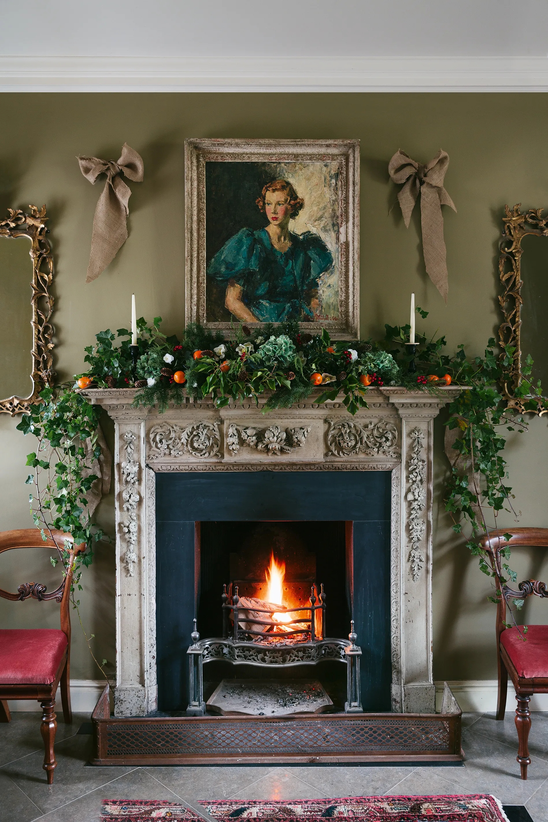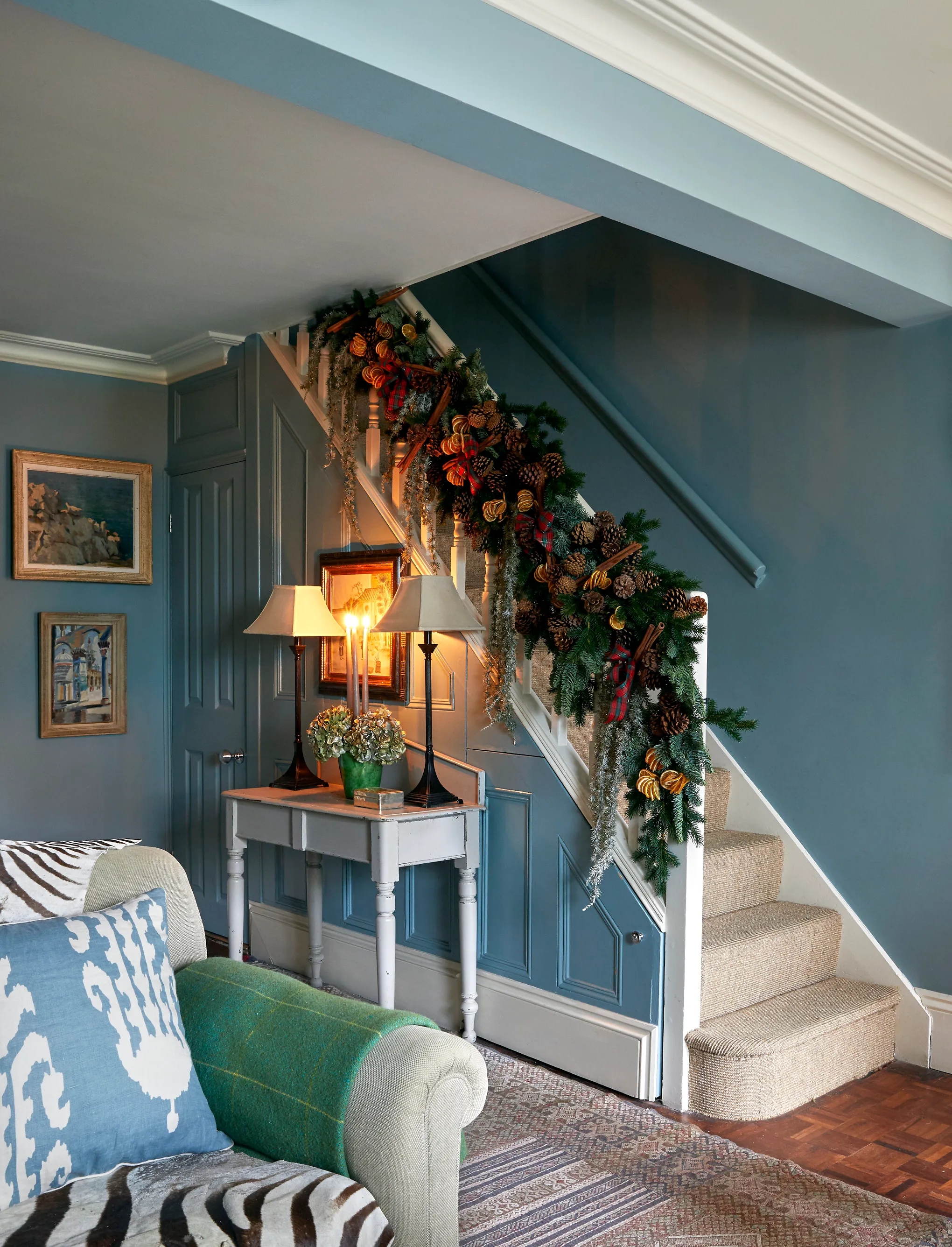 U seoskoj kući iz 17. stoljeća koju uređuju Jeremy Langmead i Simon Rayner, kamin krase svježe zelene girlande i crvene bobice. U domu Mikea Fishera u Somersetu, veliki ulazni hol ukrašen je ogromnim božićnim drvetom i vijencima od zelenila koji se protežu galerijom – detalj koji se može lako primijeniti i na stepeništa.