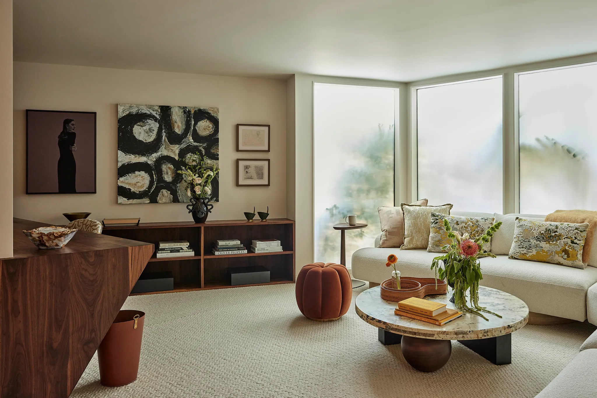 U ovom interijeru nema sterilnih linija ni hladne poslovne estetike. Umjesto toga, prostor je ispunjen mekim formama, slojevitim teksturama i detaljima koji djeluju lično i promišljeno.