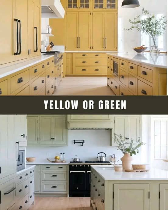 Na prvi pogled, dvije kuhinje sa slike djeluju gotovo identično po rasporedu, ali njihova boja i izbor dekoracije daju im potpuno različitu osobnost.