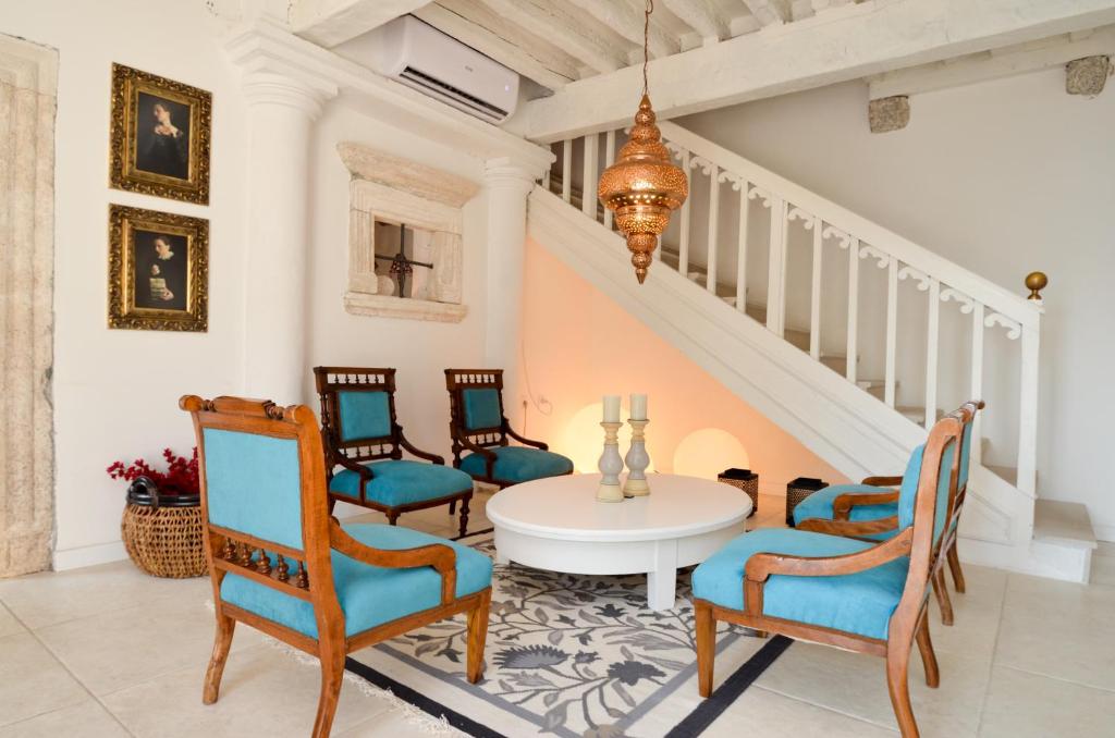 Terase su opremljene ležaljkama za odmor i prostorima za objedovanje na otvorenom. Unutrašnjost krase umjetnička djela, među kojima se ističe parodija Da Vincijeve Posljednje večere u trpezariji.