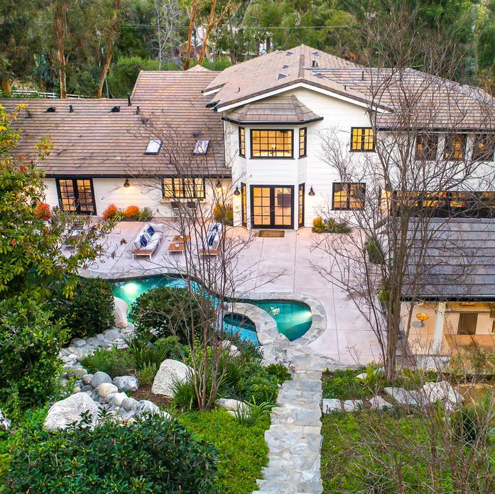 Za razliku od modernih kuća u Kaliforniji, ova je bila uređena u rustikalnom, farmhouse stilu, s drvenim podovima, kaminima i velikim trijemom. Nekretninu je 2022. prodala za čak 14,5 miliona dolara.