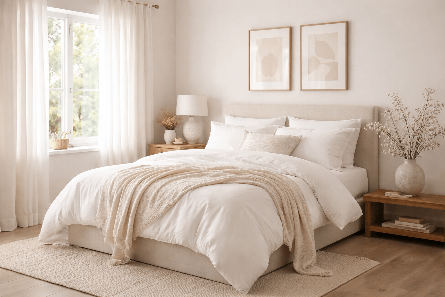 Čak i u spavaćoj sobi ili kupatilu, Cloud Dancer naglašava urednost i harmoniju, dajući prostoru smiren, ugodan izgled bez potrebe za većim promjenama.