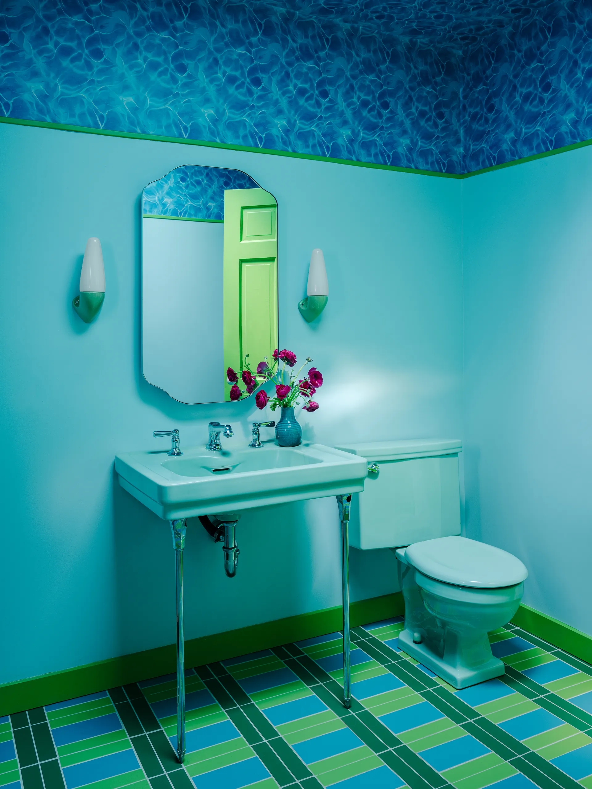 Jedan od neočekivanih trendova je ukrašavanje stropa – posebno zanimljivo u manjim kupaonicama. Tapeta s motivom vode ili morskih dubina unosi zabavnu dinamiku i čini da prostor djeluje viši i prozračniji.
