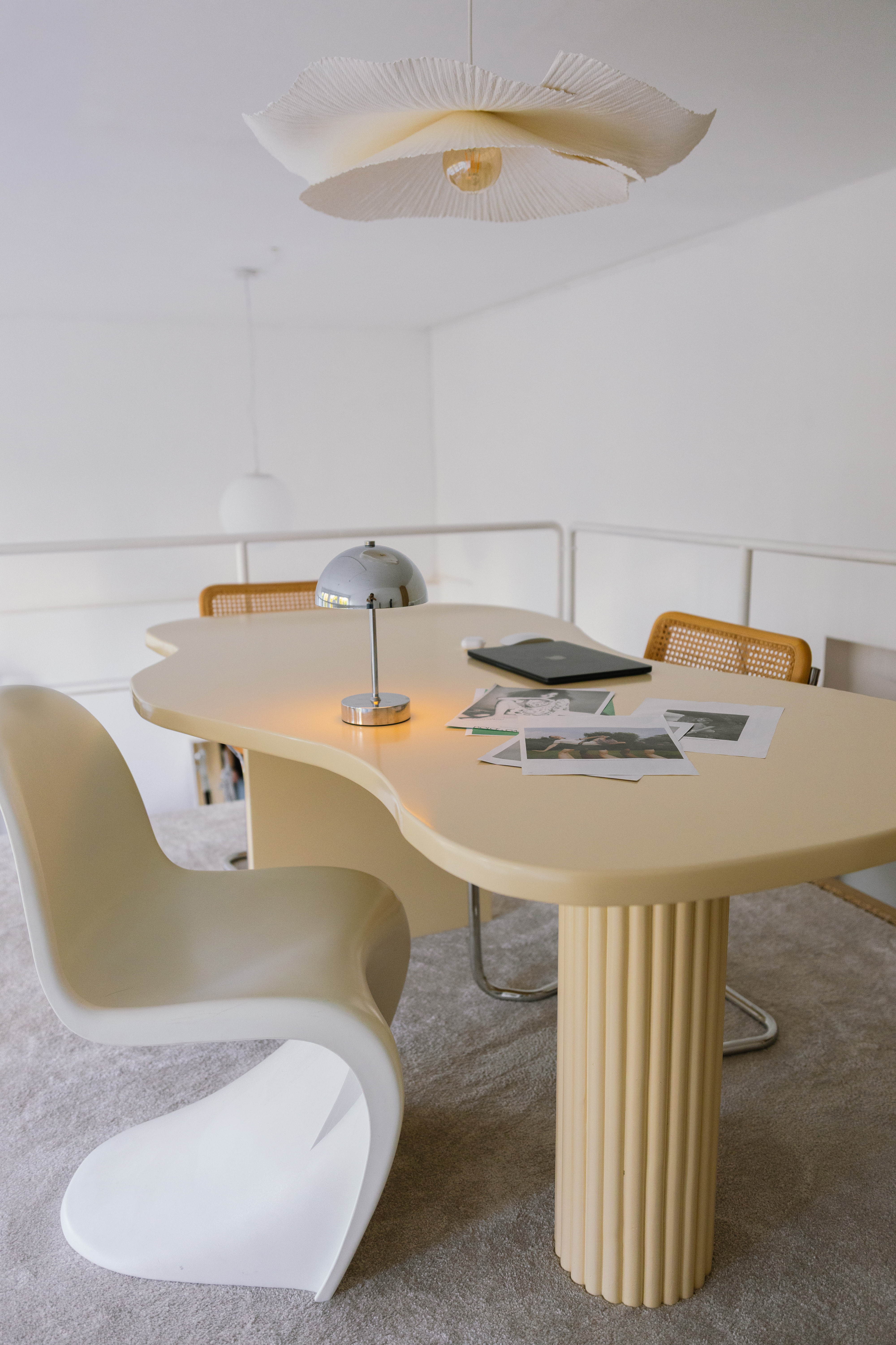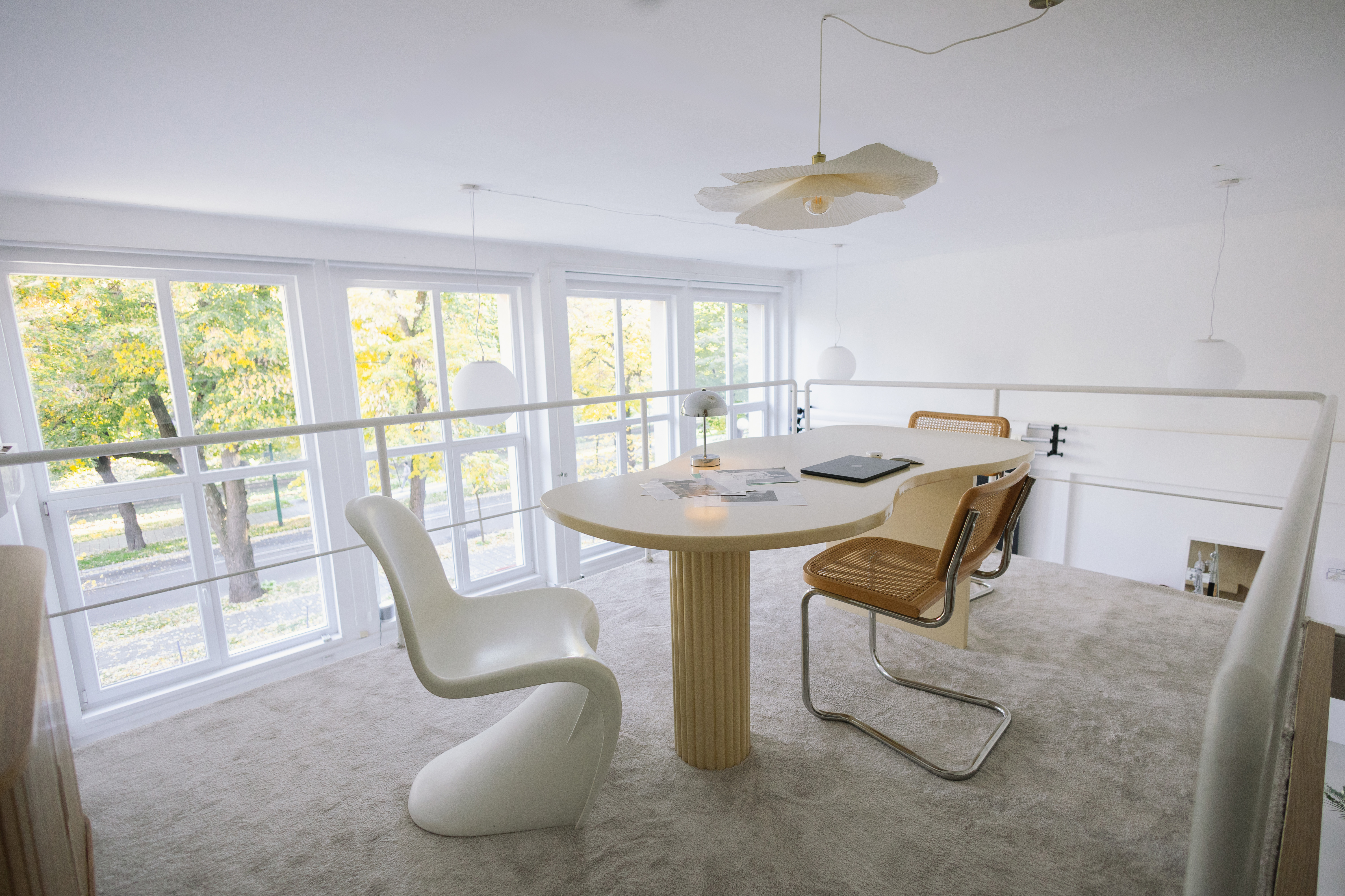 Soba odiše karakterom zahvaljujući spoju modernih i retro komada namještaja, poput unikatnog radnog stola koji je Enida sama dizajnirala, te kultnih stolica Pantona i Cesca. „Taj spoj modernog i retro stila stvara prostor koji odiše karakterom, toplinom i kreativnošću – prostor u kojem se svaka ideja može pretvoriti u nešto lijepo i autentično“, naglašava ona.