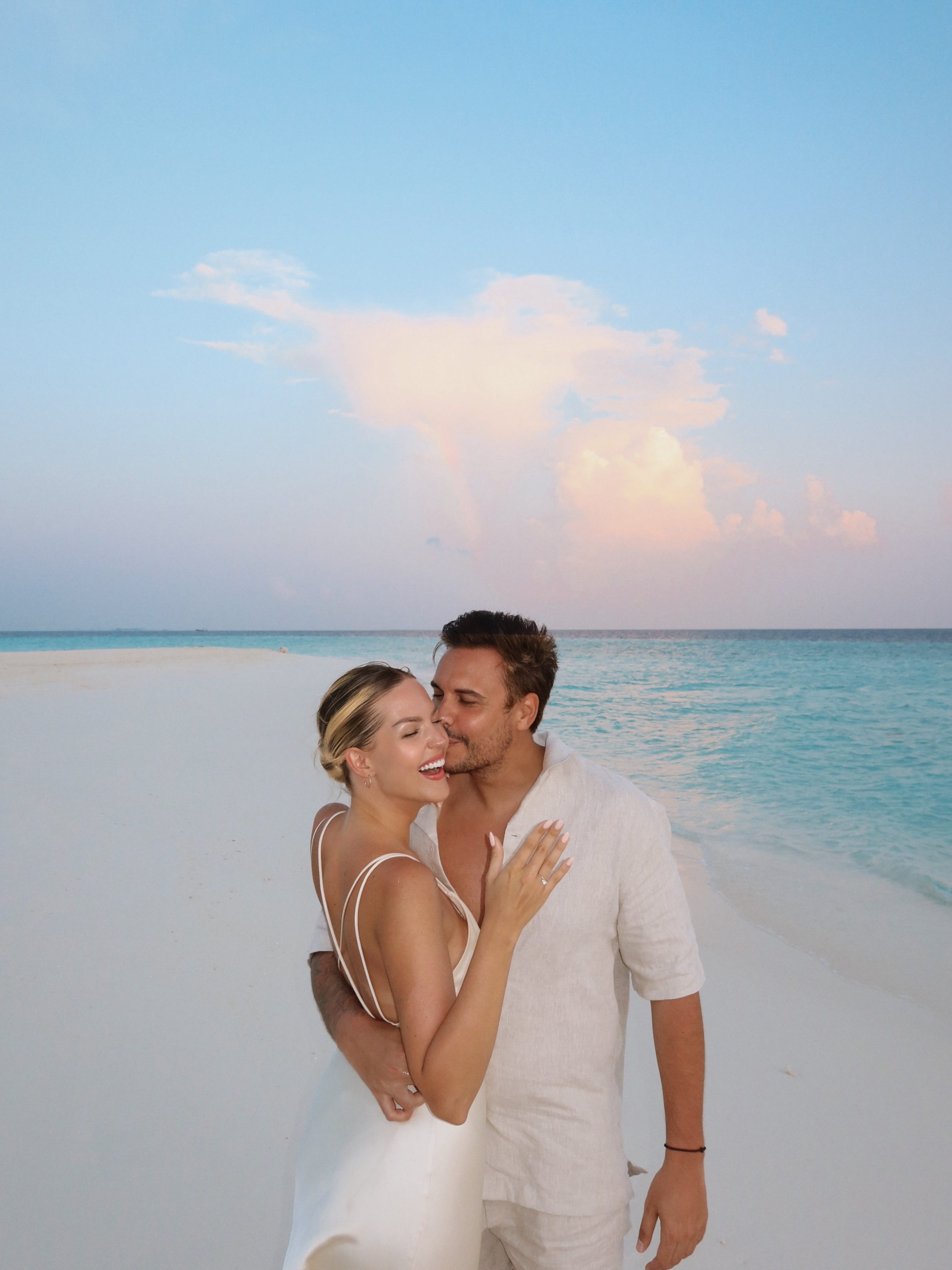 "Baš sam se radovala tom trenutku, i iskreno — imala sam osjećaj da bi to moglo da se desi baš tada na Maldivima, jer zna koliko volim to mjesto. Tog dana smo otišli na Sand Bank da gledamo zalazak, i iako je prvo padala kiša, nebo se razvedrilo u pravom trenutku. Bila sam presretna, uzbuđena, sve u isto vrijeme… i jedva sam čekala da kažem „da“! Jedan od dana koje ću pamtiti za života, zaista se potrudio da sve bude apsolutno savršeno!"