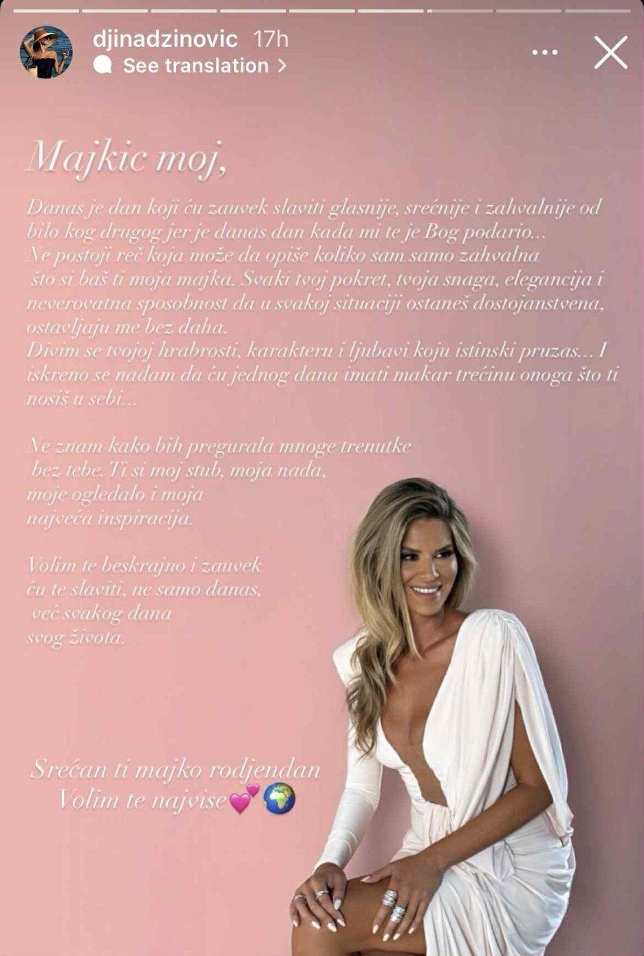 Iako su njihovi životi krenuli različitim putevima, čini se da između majke i kćerke ponovo vlada bliskost, a Đinina poruka jasno pokazuje koliko joj majka znači i koliko je cijeni.