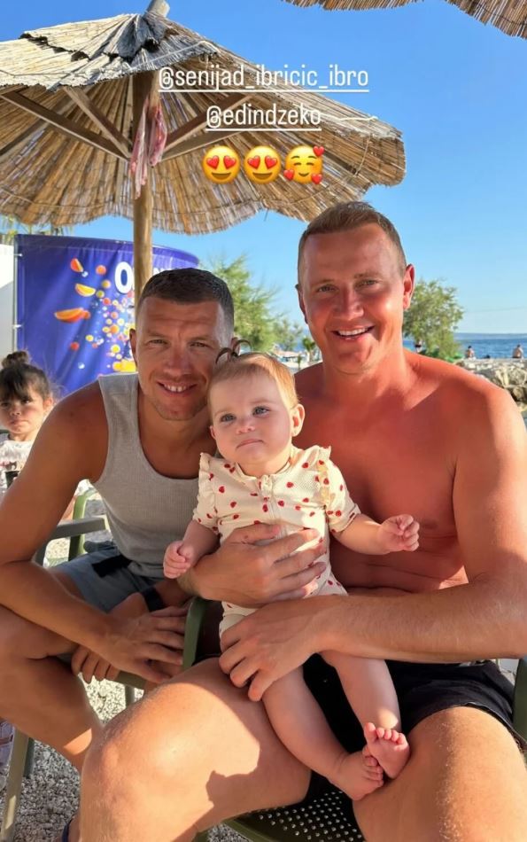 Na odmoru ga prati dugogodišnji prijatelj i kum, Senijad Ibričić, koji je na svom Instagram profilu objavio fotografiju sina u društvu Džeke uz poruku „Jedna s kumom“. Ova opuštena atmosfera i druženje pokazuju koliko su Džeko i Ibričić bliski, što dodatno ističe važnost prijateljstva u profesionalnom sportu.