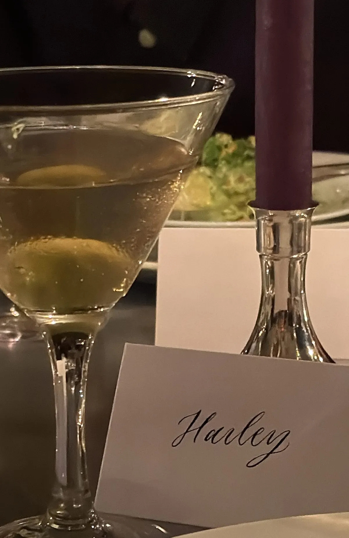 Slijedila je fotografija s Haileyinim imenom na mjestu za sjedenje, pored čaše martini koktela, srebrnog svijećnjaka i ljubičaste svijeće.