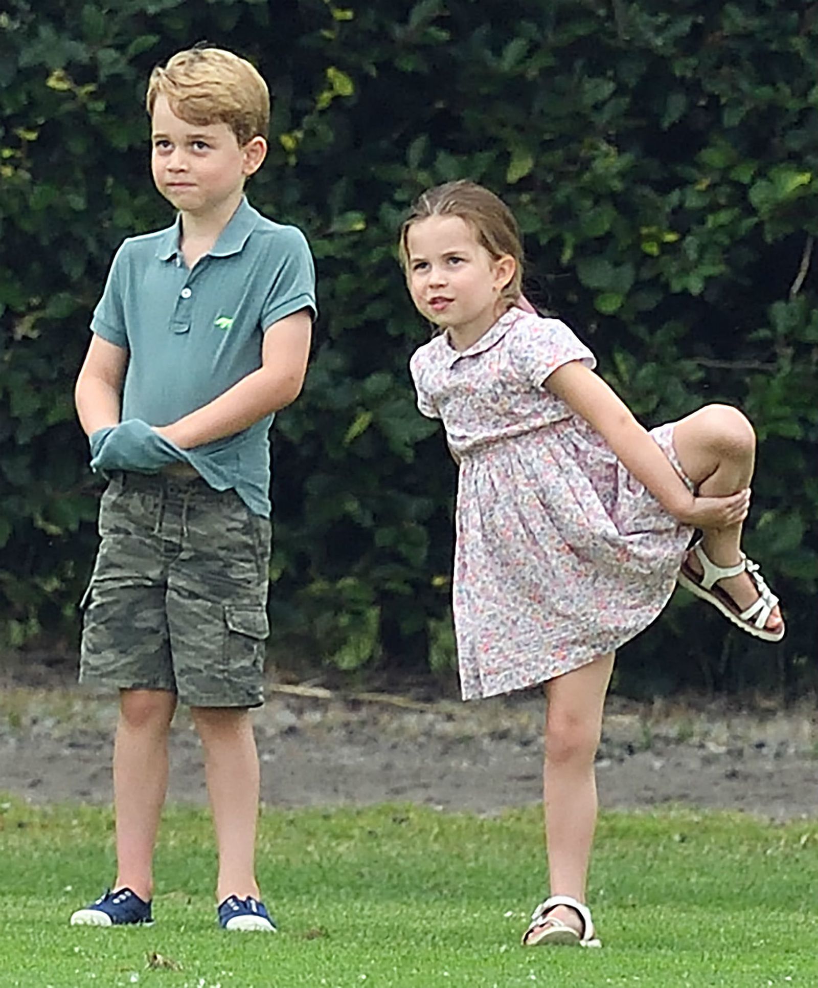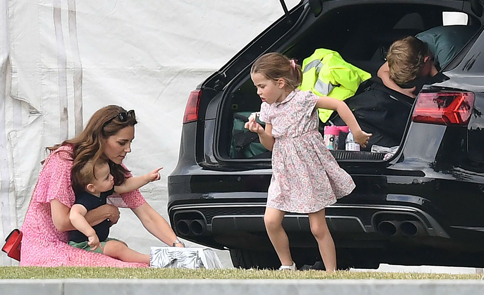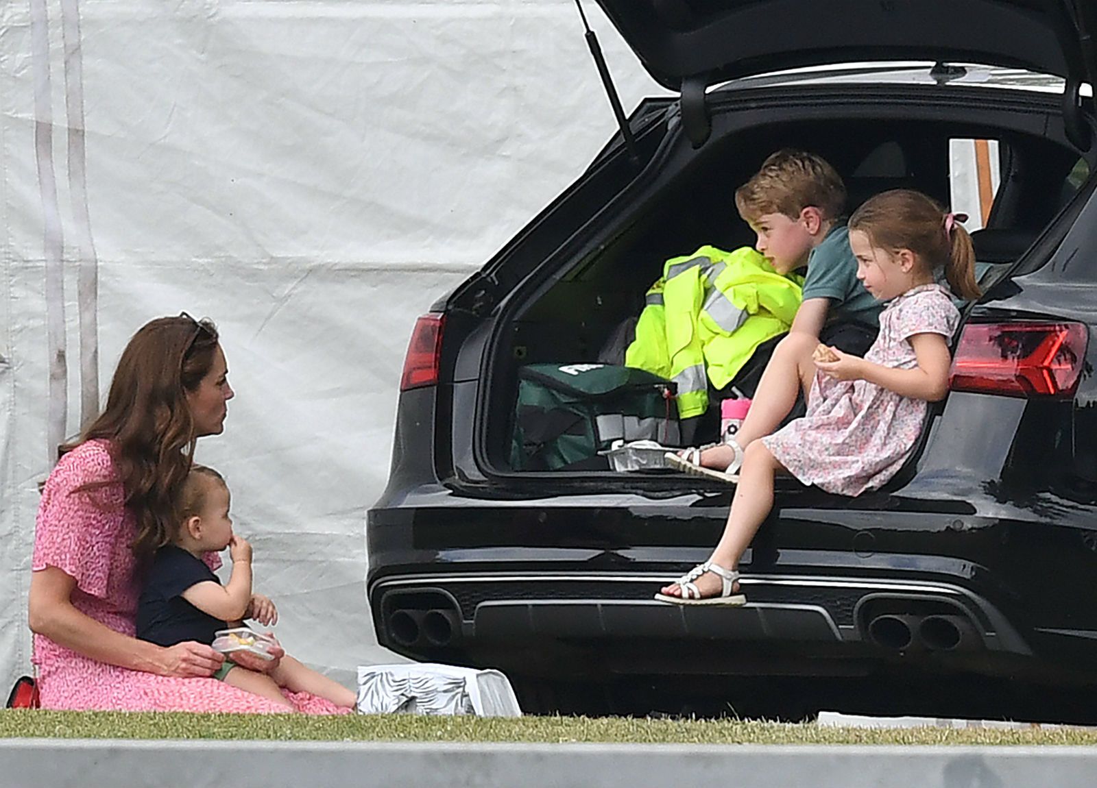 Za to vrijeme princ George, koji će uskoro napuniti šest godina, i njegova sestrica Charlotte pokazali su svoju vještinu u igranju nogometa. Kada su se umorili od fizičke aktivnosti, pojeli su užinu i odmorili se u prtljažniku obiteljskog automobila.