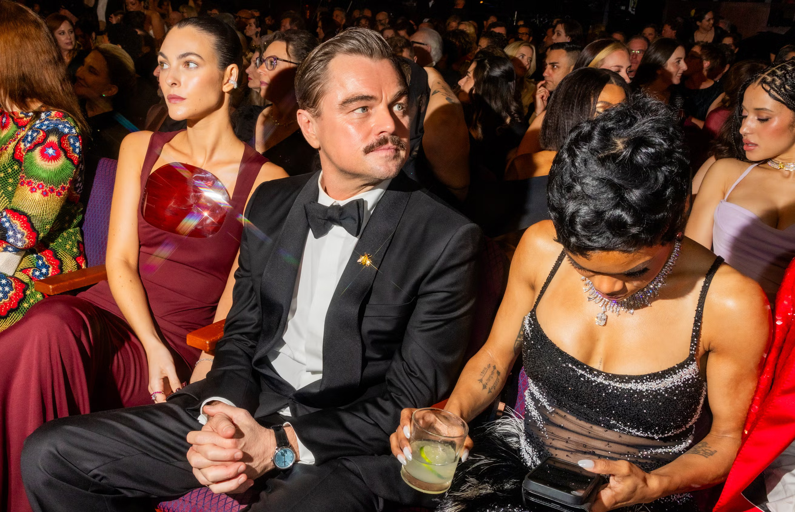 DiCaprio, koji je ove godine bio nominovan za najboljeg glumca, na crveni tepih stigao je sam, odjeven u klasični crni smoking s leptir-mašnom. Ipak, posebnost večeri bila je to što je kao svoju pratnju na ceremoniju doveo dugogodišnju djevojku Vittoriju Ceretti. Italijanska manekenka pridružila mu se unutar dvorane u elegantnoj crvenoj haljini, čime su zabilježili svoj prvi zajednički nastup na Oscarima.
