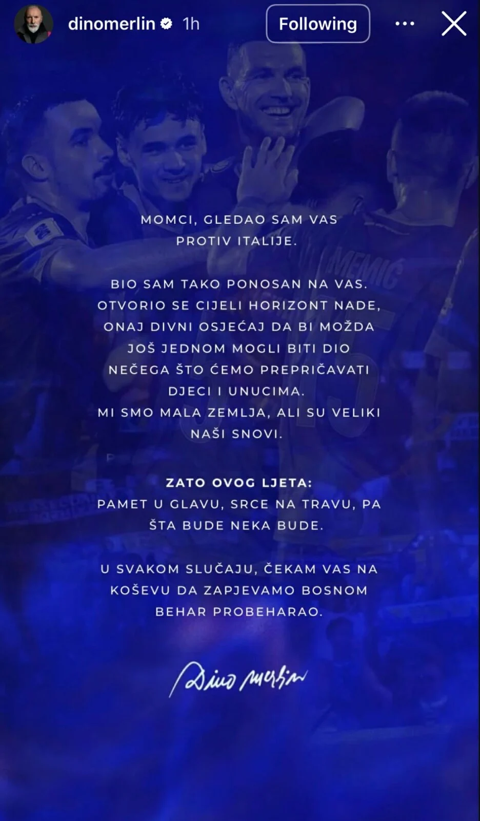 U svom stilu, Merlin je najavio i slavlje, uz želju da se uspjeh reprezentacije obilježi zajedno – pjesmom i zajedništvom koje godinama povezuje ljude širom zemlje.