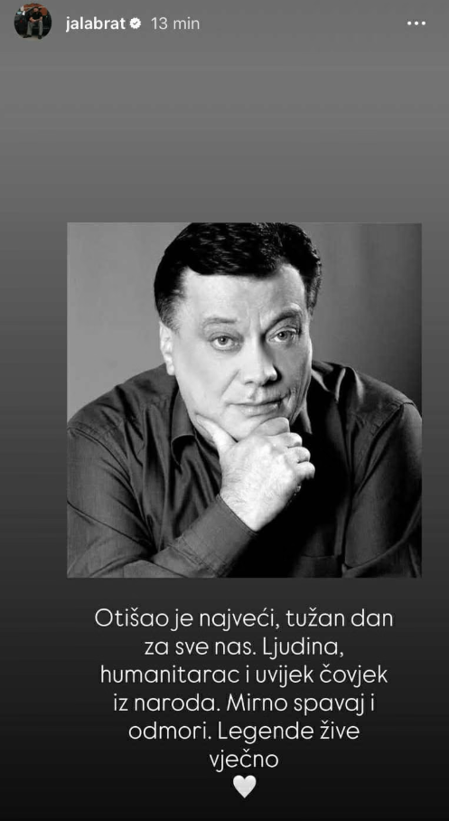 "Otišao je najveći, tužan dan za sve nas. Ljudina, humanitarac i uvijek čovjek iz naroda. Mirno spavaj i odmori. Legende žive vječno!"