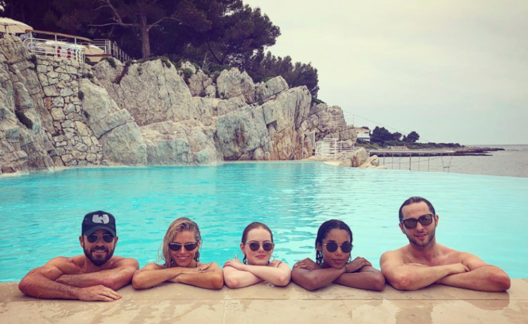 Na fotografijama s produženog zvjezdanog odmora koje su okupirale Instagram vidjeli smo kako Sienna Miller, Emma Stone, Justin Theroux, Laura Harrier i Derek Blasberg uživaju u bazenu. U hotelskoj sobi im se pridružio i poznati producent i glazbenik Mark Ronson. Sienna Miller je isprobala vanjsku skakaonicu u more, a pridružila joj se i stilistica Kate Young koja joj je osmislila kombinaciju za Louis Vuitton reviju.