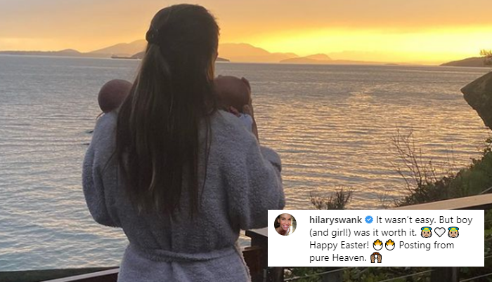 Glumica je podijelila sretne vijesti sa fanovima na Instagramu, objavivši sliku na kojoj vidimo kako uživa u zalasku sunca sa dvije bebe – dječakom i djevojčicom.