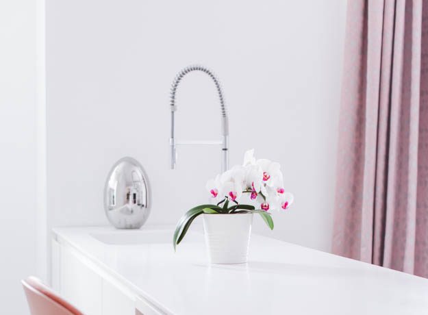 Interijer odiše svijetlim tonovima i nježnim teksturama i bojama. Dominiraju bijele površine, kako zidova tako i kuhinjskog dijela. Također, specifičnim korištenjem reflektivnih površina se uvodi dodatna svjetlost i produbljuje prostor. Jednostavnost i skladnost ovih površina upotpunjena je pažljivo odabranim komadima namještaja, uglavnom pastelnih nijansi. Može se reći da ovaj interijer predstavlja spoj klasičnog i modernog stila, koji se provlači u komadima namještaja i rasvjetnih tijela, kao što su danski proizvođač Gubi i talijanski Flos. A kako u cijelosti izgleda ovaj prekrasan projekt stana provjerite sami u nastavku…