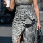 Nosila je usku sivu haljinu od tvida u kombinaciji sa štiklama Christiana Louboutina, a sve potrebne sitnice koje je nosila sa sobom stavila je u torbu modne kuće Hermes.