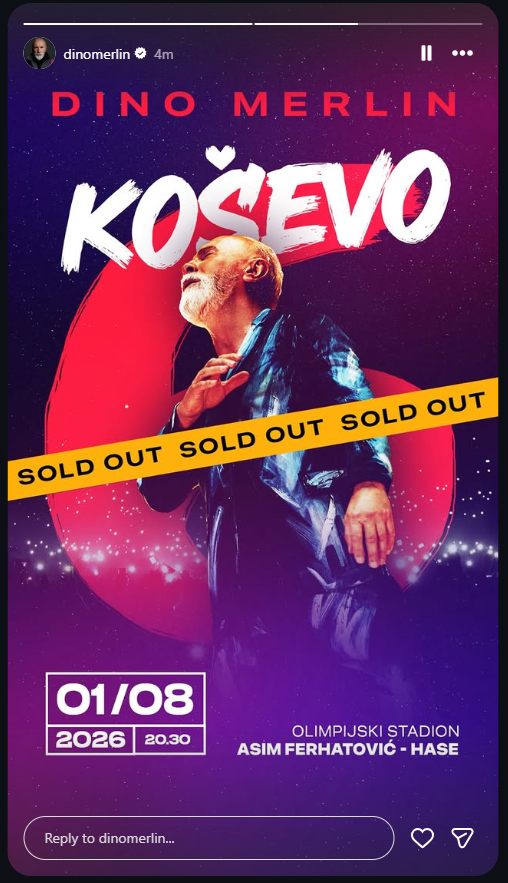 Dva uzastopno rasprodana koncerta na stadionu Koševo potvrđuju snažnu povezanost između Dine Merlina i njegove publike, a upravo interes, strpljenje i entuzijazam fanova čine ovu priču posebnom.
