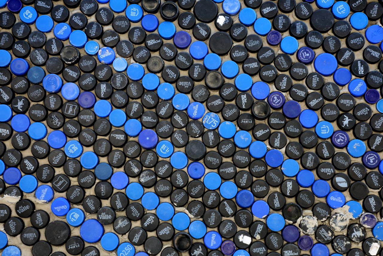 Završena za tri nedjelje, kompozicija je napravljena od više od 100.000 recikliranih čepova za flaše, nakon što su ih lokalni stanovnici sakupljali tokom nekoliko mjeseci, prali i sortirali.