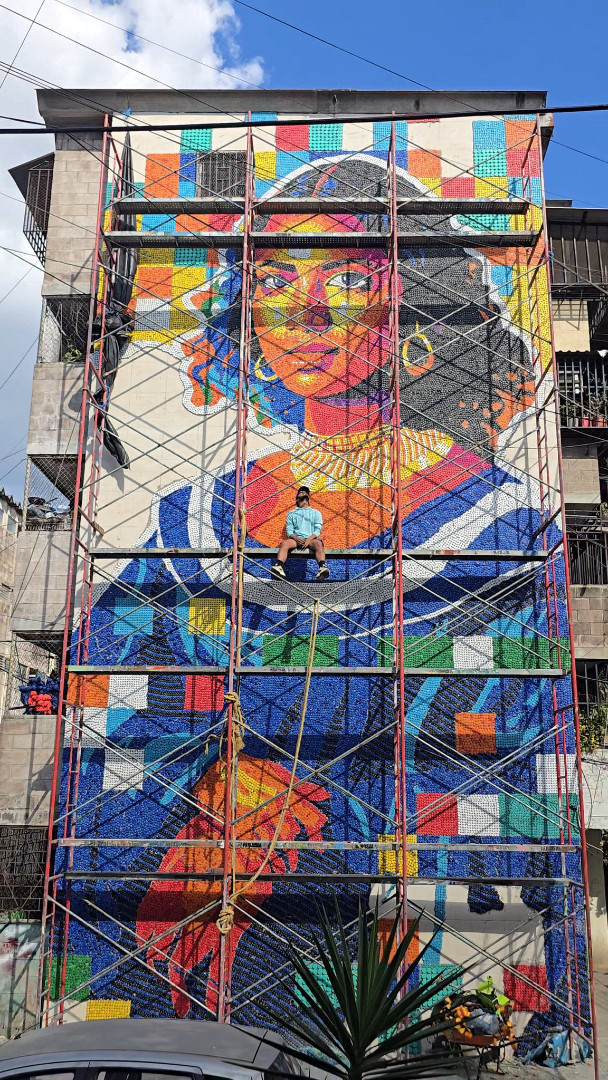 🇸🇻 ¡Hemos terminado, en El Salvador, el mural de tapas mas alto del mundo! Con mas de 100.000 tapas de plastico.