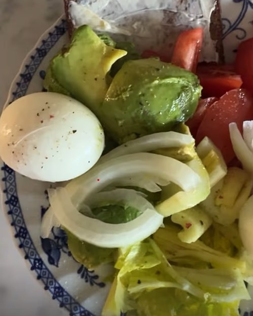 Na Instagram Storyju Heidi je podijelila video tanjira s dva kuhana jaja, avokadom, cherry rajčicama, celerom, salatom i sirovim lukom, prelivenog začinskim umakom od trava. Uz to je dodala krišku tamnog raženog hljeba premazanog nečim što nalikuje mekom siru.