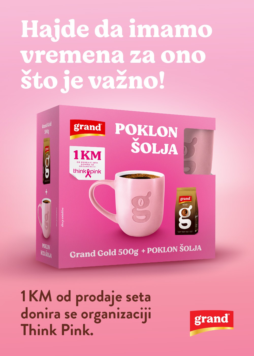 Ove godine, kampanja se nastavlja pod sloganom „Hajde da imamo vremena za ono što je zaista važno“, a u okviru nje lansirano je posebno promotivno pakovanje sa rozom šoljicom. Za svako kupljeno pakovanje, Grand kafa donira 1 KM udruženju Think Pink za besplatne preglede.