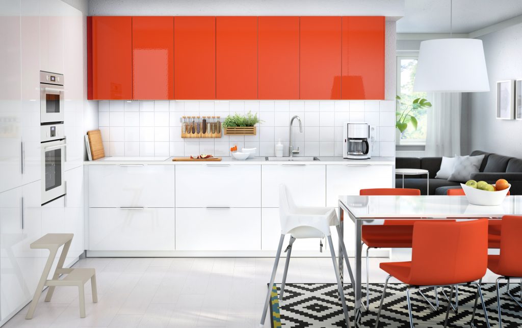 Nijanse narandžaste boje su posebno dobar izbor i za kuhinje. Jaka narandžasta može biti dominantna boja, ali i odličan akcent u kuhinji. Novi trendovi u dizajnu interijera su kuhinjski elementi i pultovi za kuhinju, baš u boji narandže.
