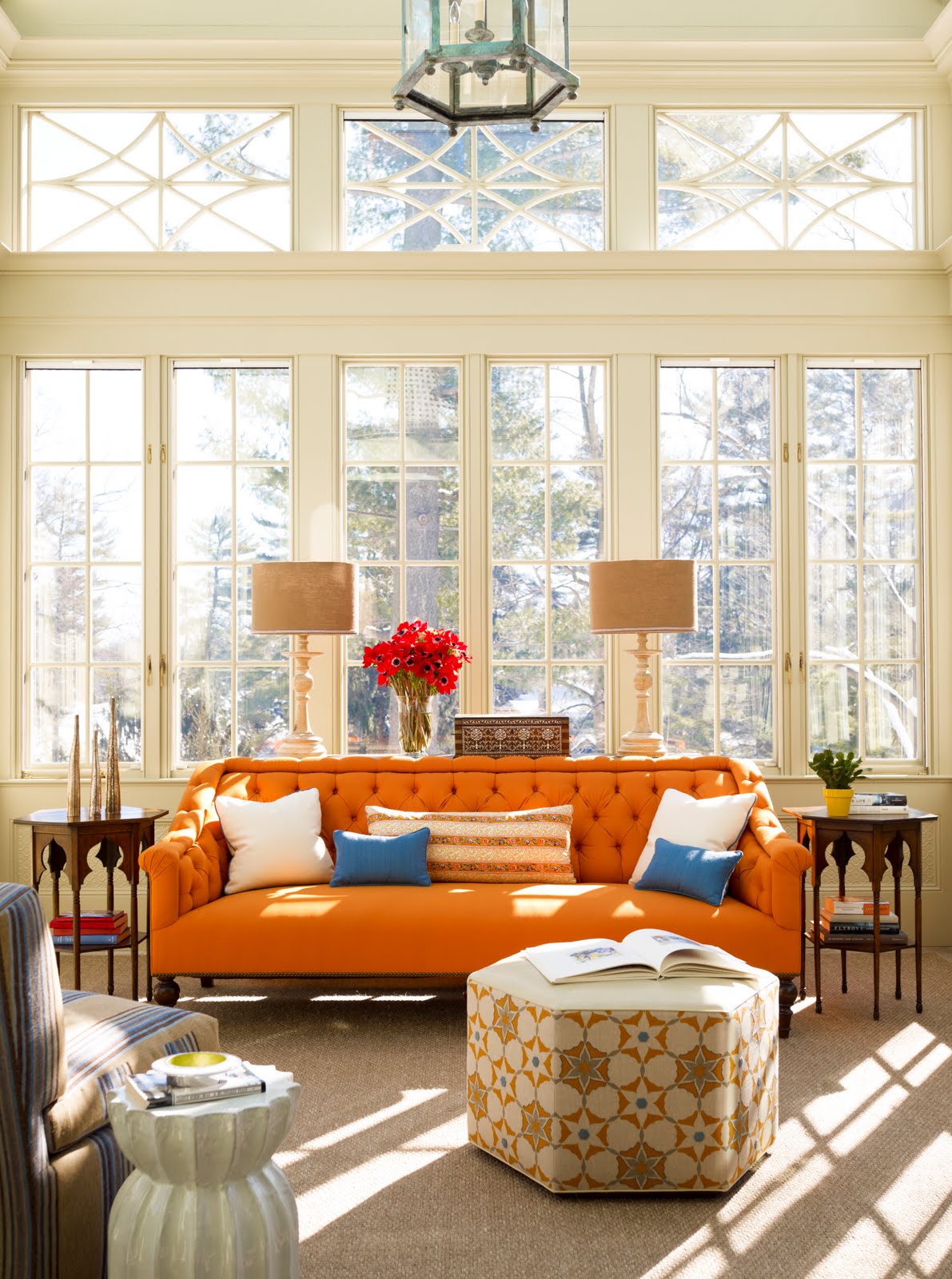 Soba obojena u narandžasto utječe pozitivno, jer olakšava komunikaciju, ublažava nervozu i podstiče apetit. Zato je narandžasta boja idealna za sobe u kojima se dešavaju neobavezna druženja i proslave svih vrsta, za sobe u kojima će prolaziti mnogo ljudi i za sobe gdje se očekuje i želi aktivnost, kao što je naprimjer dnevna soba. Da bi oživjeli prostor u dnevnoj sobi možete da nabavite samo detalje ili ukrase u narandžastoj boji. Dodajte narandžaste šare kao akcente na jastučićima, umjetničkim slikama i drugim ukrasima.