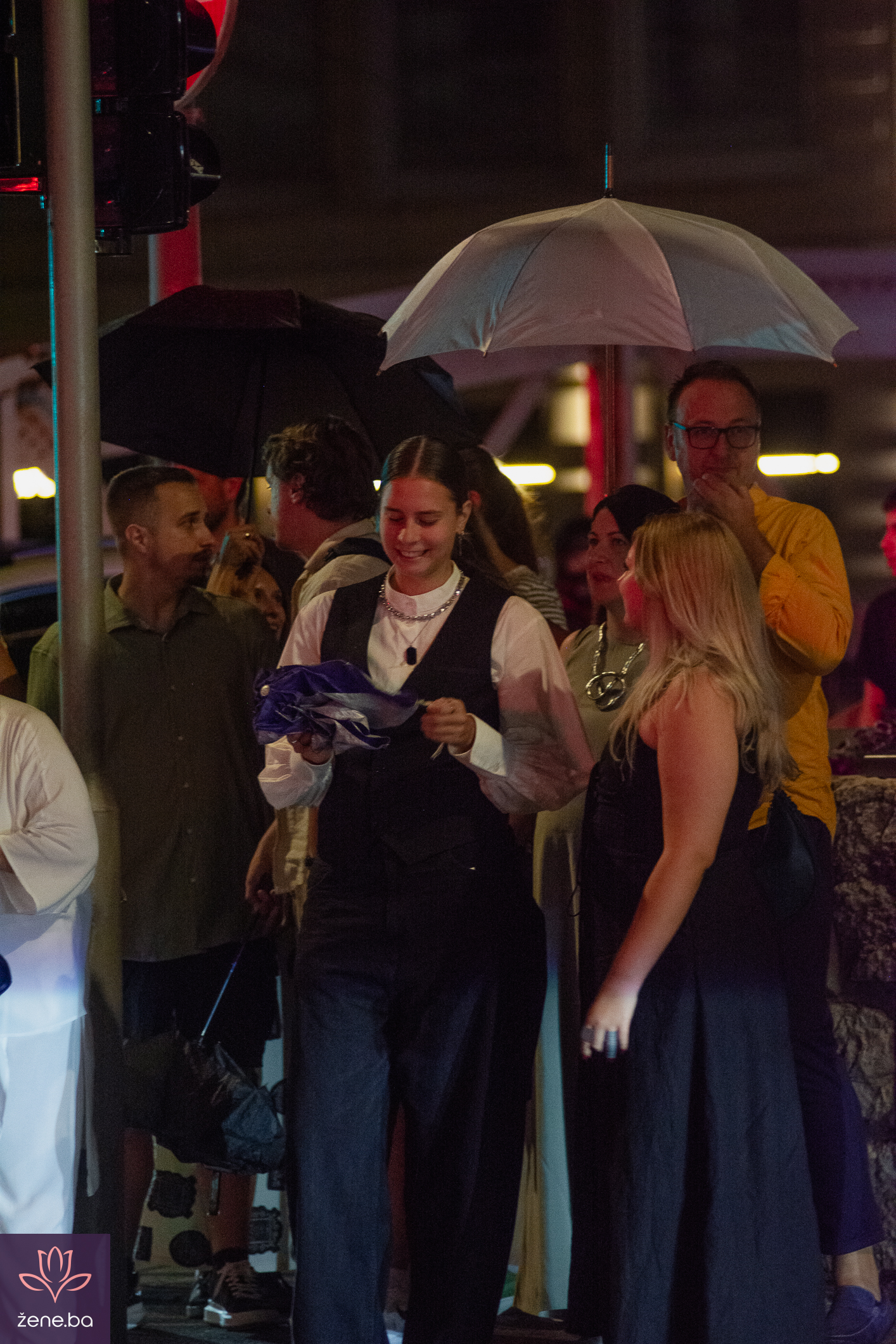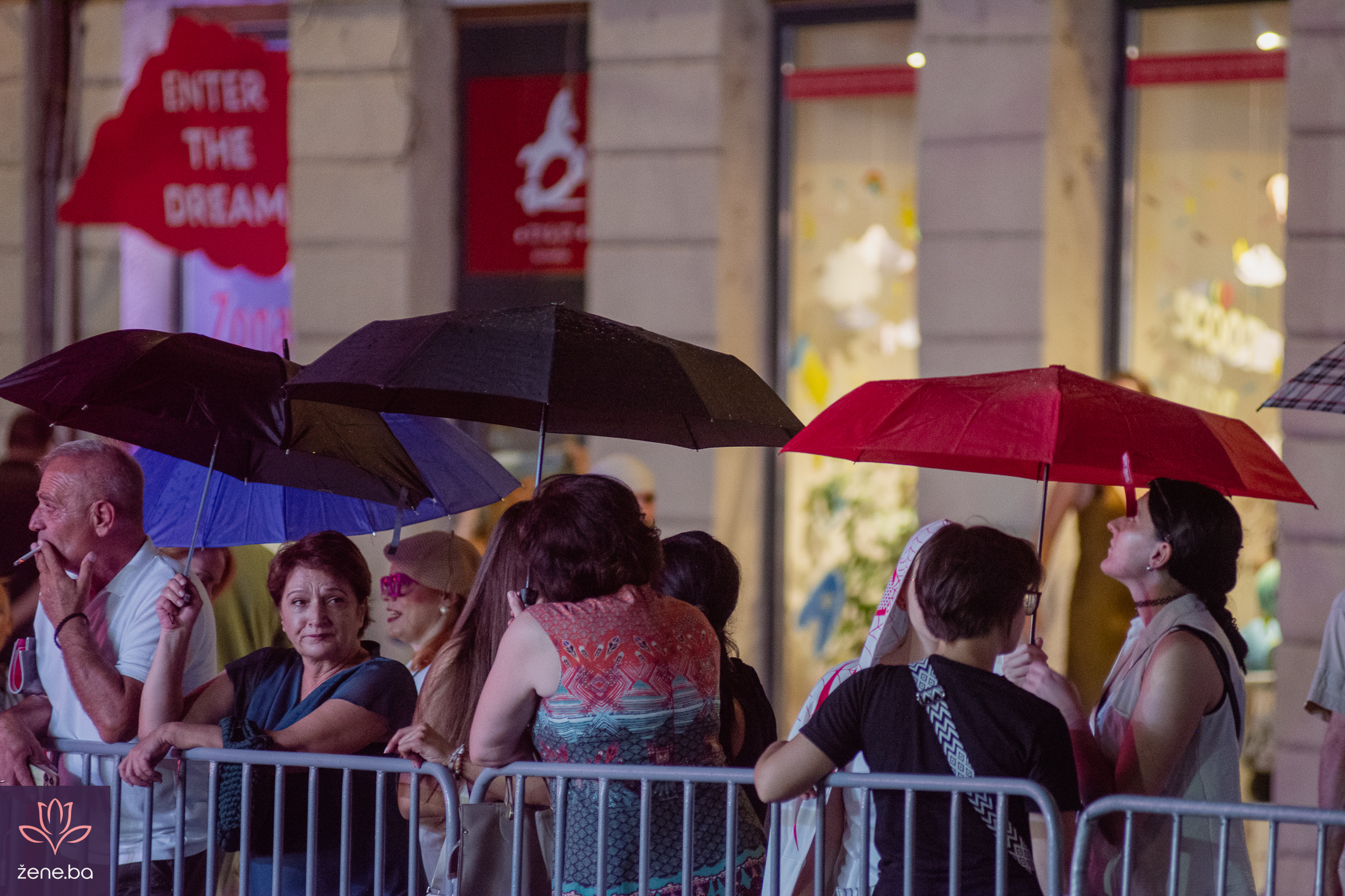 Ni kiša, ni premještanje programa nisu uspjeli pokvariti raspoloženje. Naprotiv, činilo se kao da je grad još življi, mnogi su se sklonili pod tende i kišobrane, ali niko nije žurio kući. Atmosfera je bila gotovo magična, sa svjetlima reflektora, šarenim kišobranima, kabanicama i toplim osmijesima.