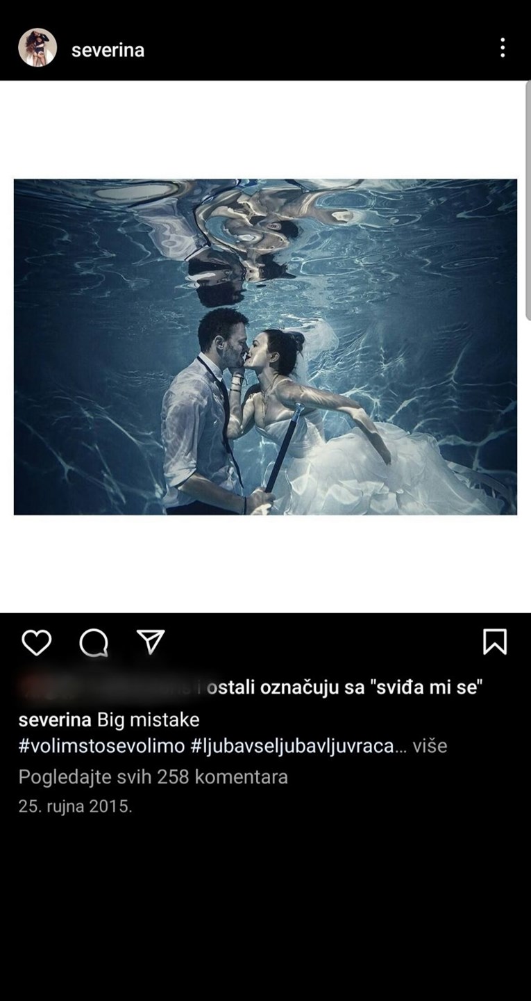 "Velika greška", piše sada u opisu vjenčane fotografije, čime je Seve otkrila svoje mišljenje o propalom braku.