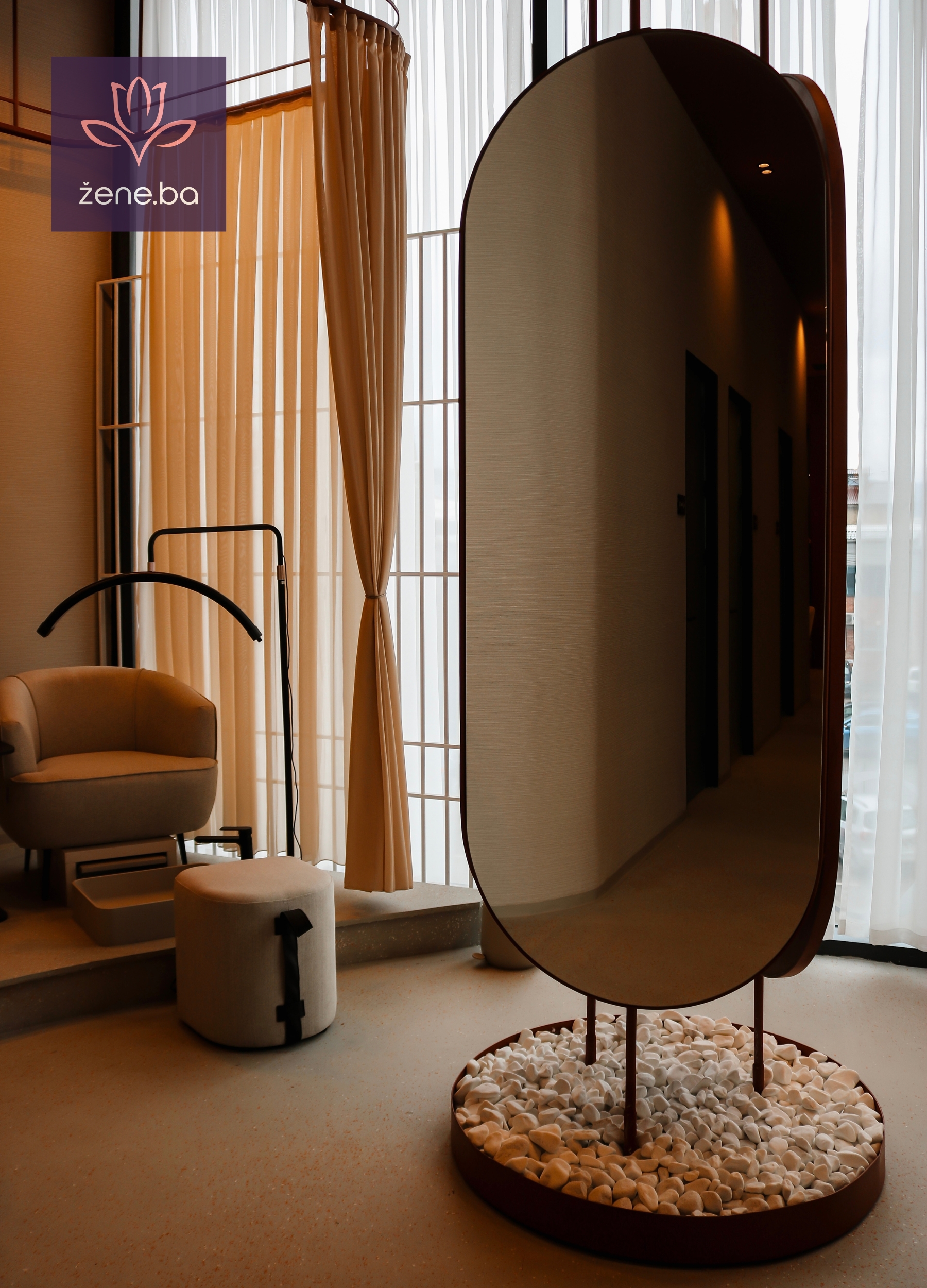 Svijetli, minimalistički interijer, pažljivo odabrani materijali, mirisi i muzika skupa stvaraju ambijent koji podsjeća na utočište — mjesto gdje se um umiruje, a tijelo regeneriše.
