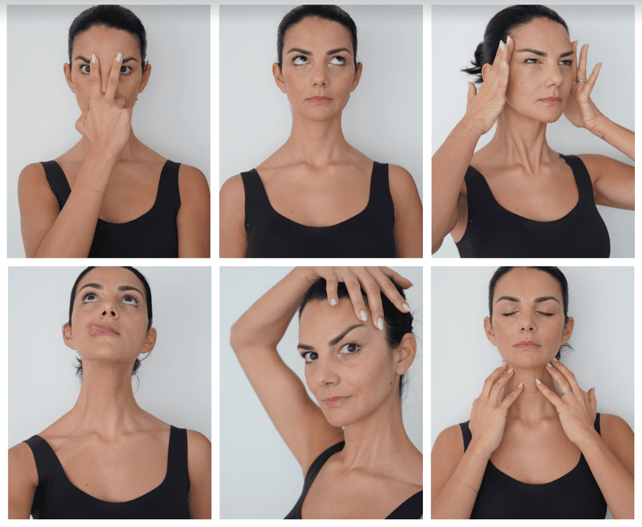 "Učimo svjesno pomicati mišiće i tako korigujemo ono što nam smeta – spuštene kapke, bore između obrva, spuštene uglove usana, podbradak", dodaje Ciocca.