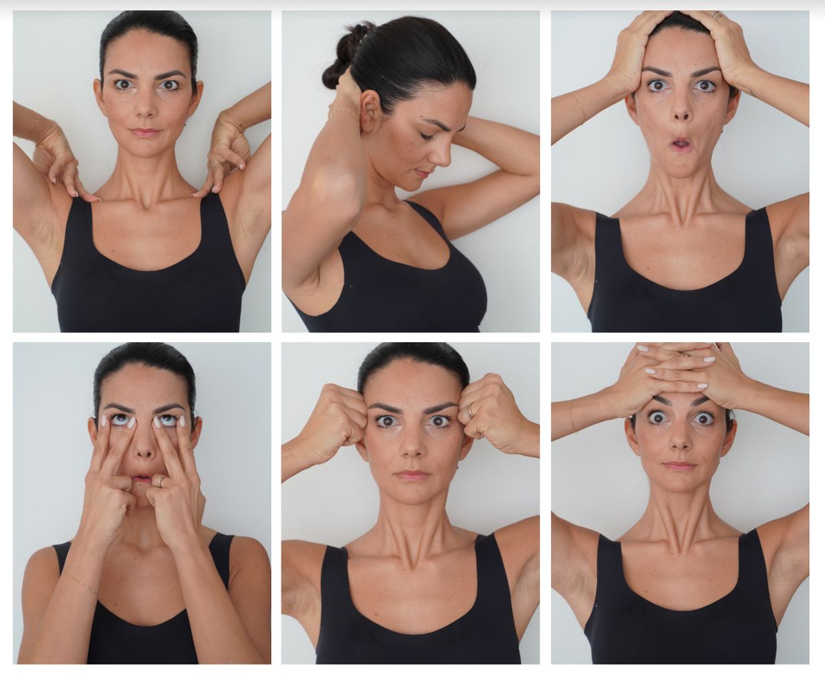 "U zavisnosti od vaših potreba, možete raditi vježbe za čelo, oči, obraze, usne, konture lica i vrat", kaže Ciocca.
