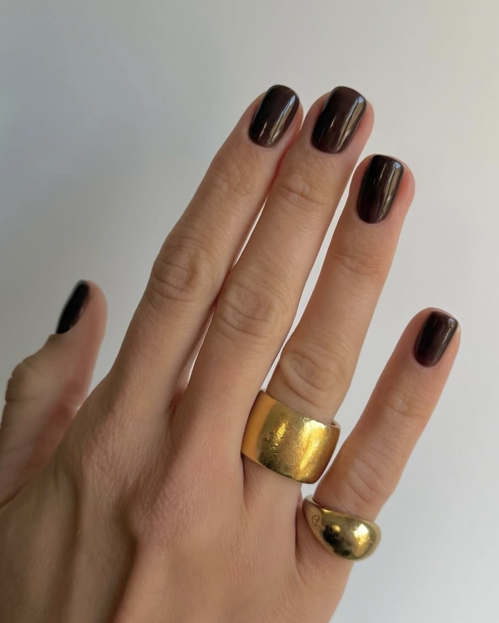 Za nail umjetnicu Holly Falcone, tamni nokti su modni klasik. „Tamni nokti su poput odličnog kožnog modnog detalja“, kaže Falcone. „Posebno su šik zimi i uklapaju se u praznike i sve događaje koje zima donosi.“