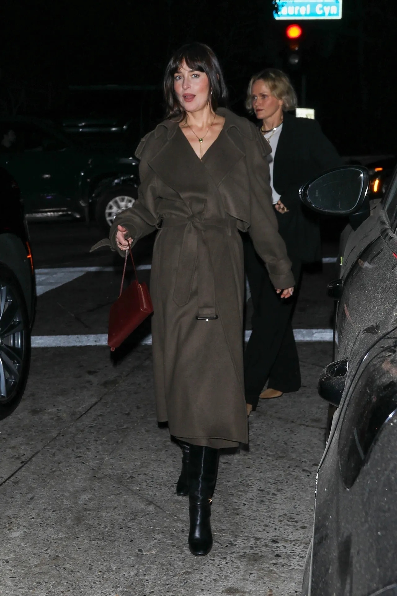 Bilo da je riječ o odjeći ili modnim dodacima, Dakota Johnson dosljedna je klasicima — uključujući i crne kožne čizme do koljena. Svaka garderoba trebala bi imati barem jedan ovakav par. Ovi jednostavni modeli nude čistu i elegantnu siluetu, a njihova nosivost garantuje da će se iznova vraćati u svakodnevne kombinacije, godinama.