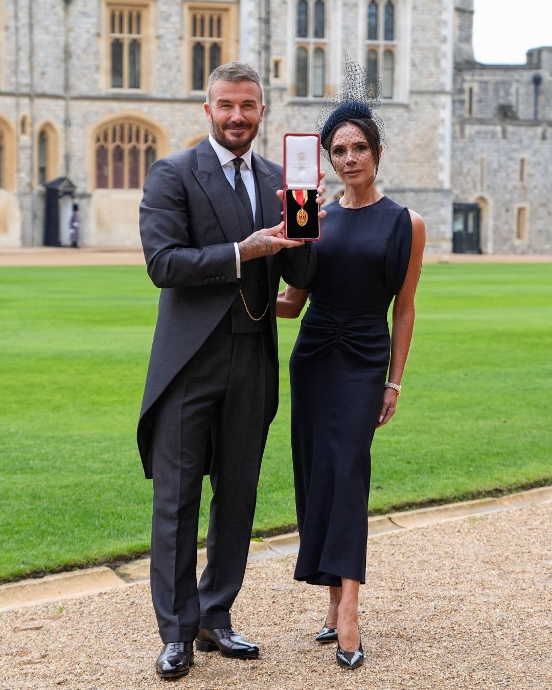 Da prihvati priznanje, Sir David je odabrao trodijelni morning suit od britanskog mohera – prvi takav komad iz Victorijinog ateljea. Iako trenutak nije bio direktno o njoj, Lady Beckham je davno savladala umjetnost kako da svaku priliku iskoristi i za sebe. Victoria je zablistala u custom navy Bela haljini, dajući svijetu uvid u svoj dizajnerski talenat i kreativnost.
