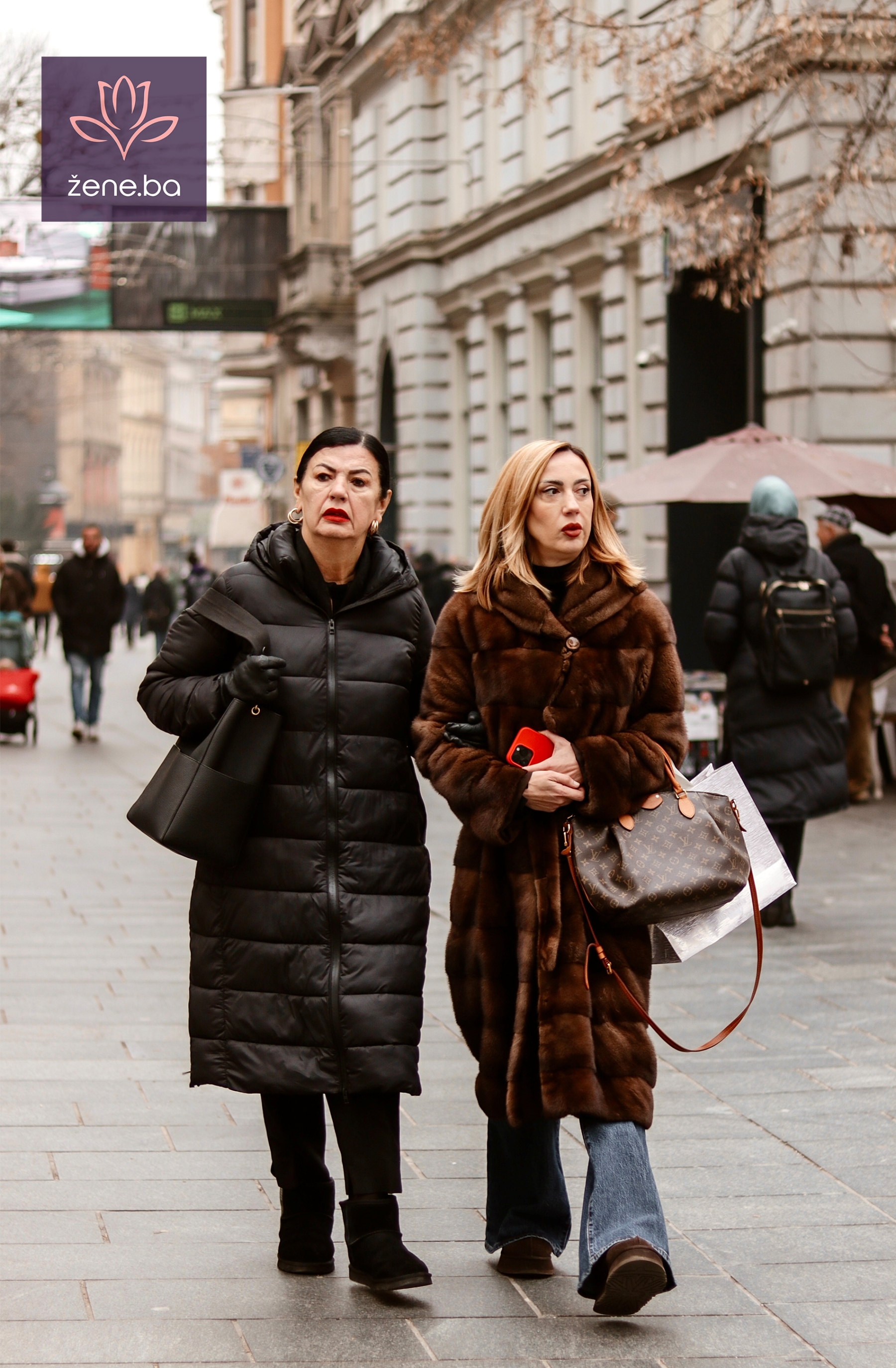Na jednom od gradskih uglova zabilježili smo i tri dame različitih generacija u toplim zimskim kaputima. Njihova blaga usklađenost u tonovima i materijalima, te opušten način na koji koračaju kroz hladan dan, stvaraju prizor koji podsjeća kako se stil oblikuje tokom života — nenametljivo, ali sigurno.