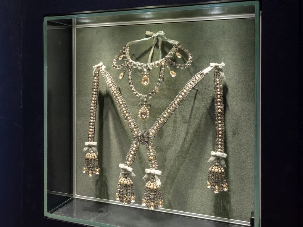 Iako nijedna njezina haljina nije u potpunosti sačuvana, izloženi su autentični komadi nakita, cipelice, fragmenti dvorskih haljina, kao i ekskluzivna "knjiga garderobe" iz 1782. godine s uzorcima tkanina koje je voljela.