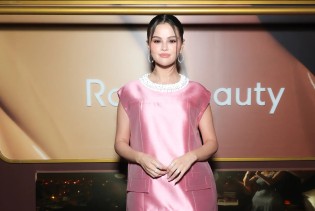 S make-upom kao i obično nije pretjerivala pa je uz blago svjetlucavo sjenilo na usne stavila samo prozirno sjajilo sa šljokicama. Kosu je zalizala u elegantan niski rep koji sjajno pristaje ovom večernjem outfitu.